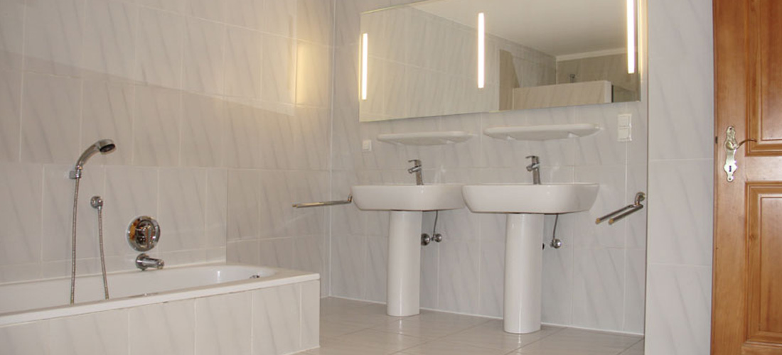 Herrschaftliche Wohnung in absoluter Traumlage. Parkettboden und Cottoboden, Deckenstuck, Schlafzimmer, Wohnzimmer, elegante Wohnküche und sehr großes Bad mit Dusche und Wanne, sep. Gäste-WC.